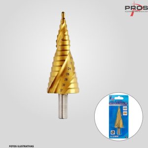 Broca Escalonada Lotus ideal para cortes espirais esféricos . Confeccionada em aço rápido é revestida em Titânio. Broca de qualidade da linha plus profissional.