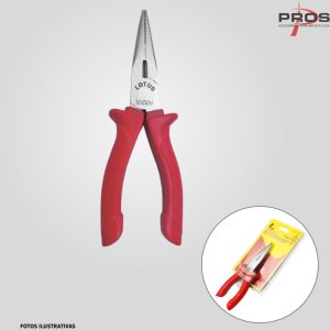 Alicate bico longo com isolamento de 1000V, comprimento de 6 polegadas (Aprox. 152mm). Qualidade Plus, super resistente, produzido em aço carbono forjado e temperado, revestimento em níquel, resistente a oxidação (ferrugem), cabo ergonômico, antiderrapante para mais proteção e melhor aderência. … Veja Mais