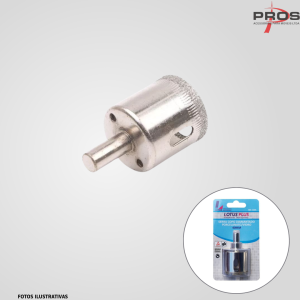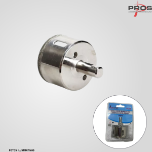 SERRA COPO DIAM PORCELANATO/VIDRO Serra copo de aço galvanizado, com borda de corte revestida com diamantes sintéticos, para cortes refrigerados em tijolo, pedra, concreto, alto desempenho em cortes de vidro e porcelanato, deixando as superfícies lisas sem arestas ou rebarbas.