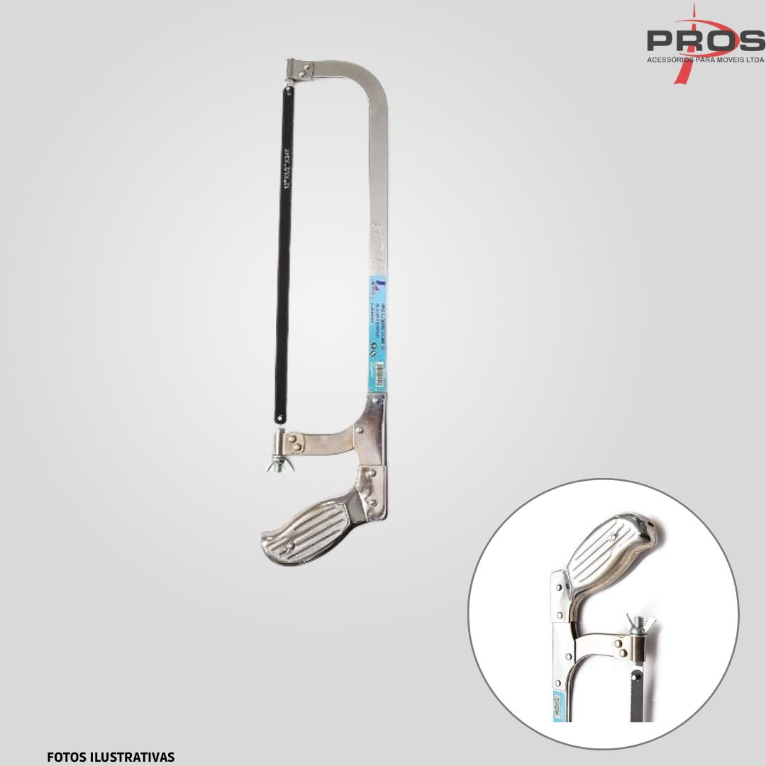 Arco de Serra Sólido, modelos cromado e em pintura eletrostática, lâmina: comprimento total 46cm e largura 11mm, tamanho lâmina 31cm, cabo aberto de alumínio reforçado, lâmina em aço carbono temperado ideal para gesseiros, marceneiros e profissionais em geral.