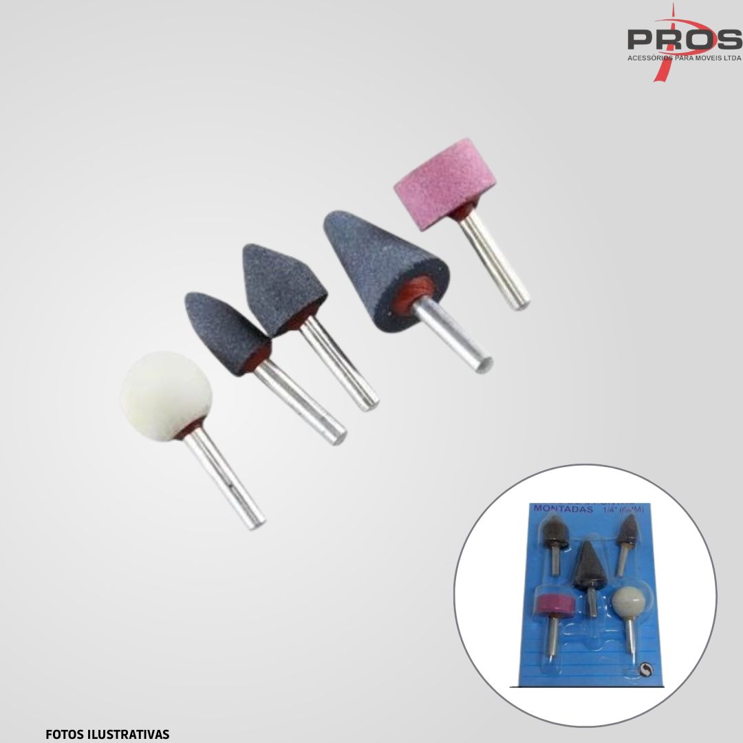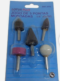 Jogo de pontas montadas utilizadas em retificadoras para usinagem, retífica em geral para desbastes em locais de difícil acesso.