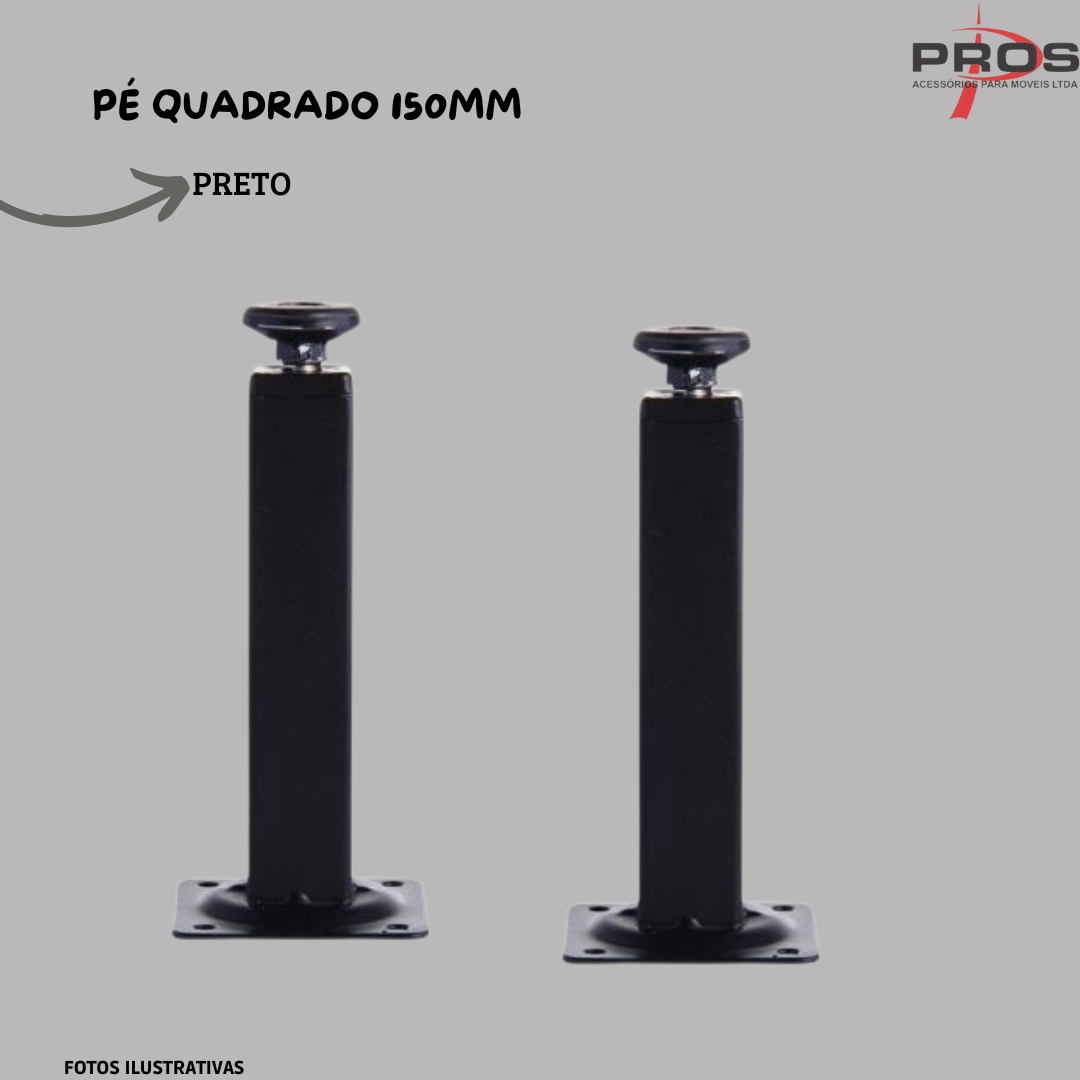PÉ QUADRADO 150MM PRETO
