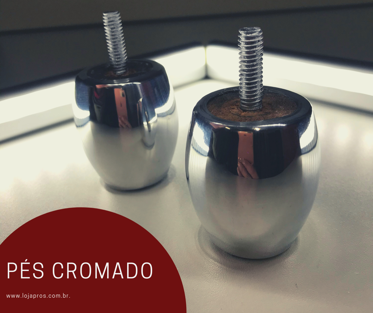 Pés com rosca 5/16 maciço de madeira, revestido com capa de metal cromada.