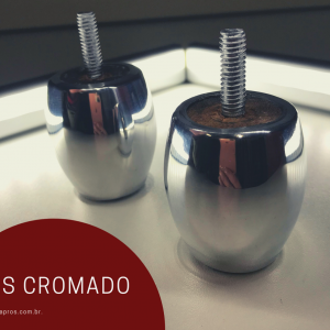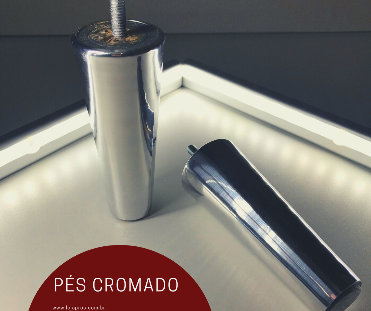 Pés com rosca 5/16 maciço de madeira, revestido com capa de metal cromada.