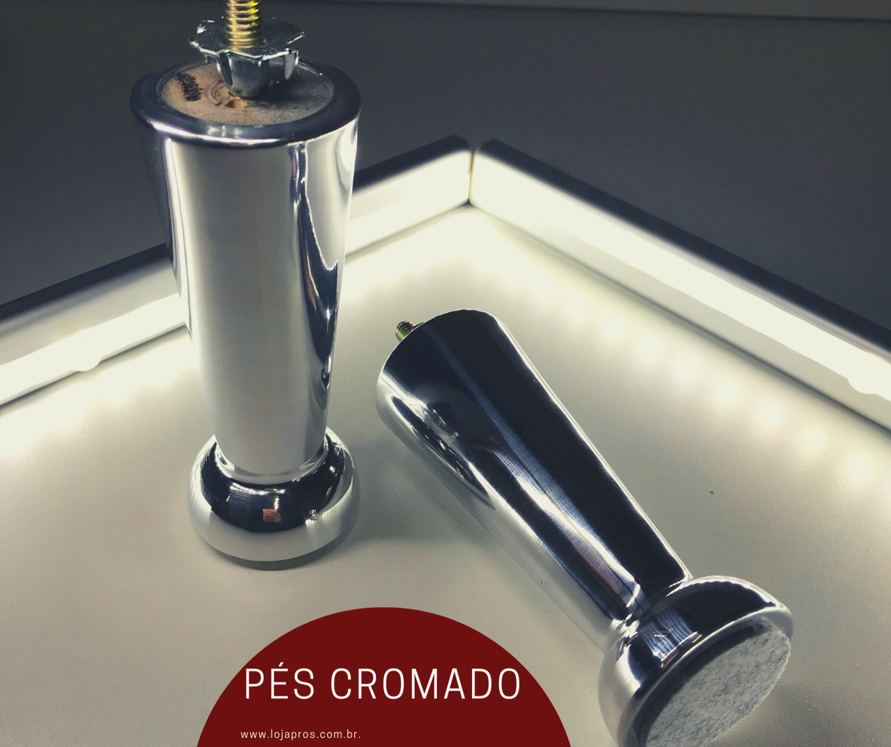 Pés com rosca 5/16 maciço de madeira, revestido com capa de metal cromada. Com sapata niveladora. VENHA CONFERIR