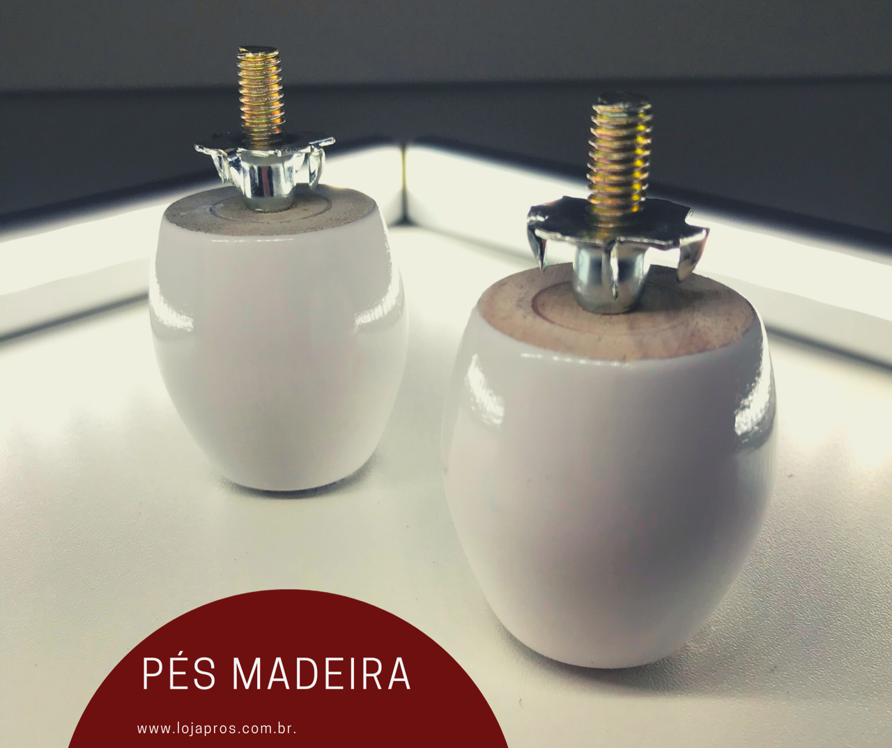 Pés com rosca 5/16 maciço de madeira. Com feltros na extremidade para não danificar o seu chão! VENHA CONFERIR