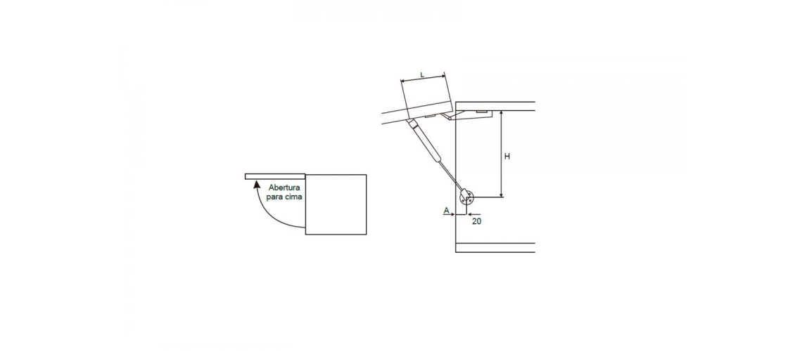 Articulador com pistão a gás para abertura de cama tipo “baú” permitindo o aproveitamento do espaço sob o colchão.