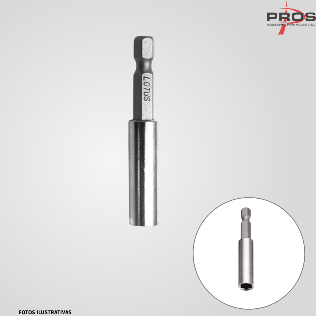 Porta Bit de 1/4″ , em aço CRV (Liga de carbono, cromo, vanádio e outros elementos), Plus, super resistente a impactos manuais e a oxidação, niquelado, com pontas magnéticos. Ideal para prolongar o alcance de parafusos em orifícios mais profundos.