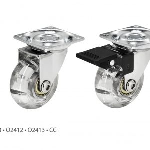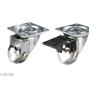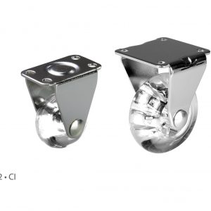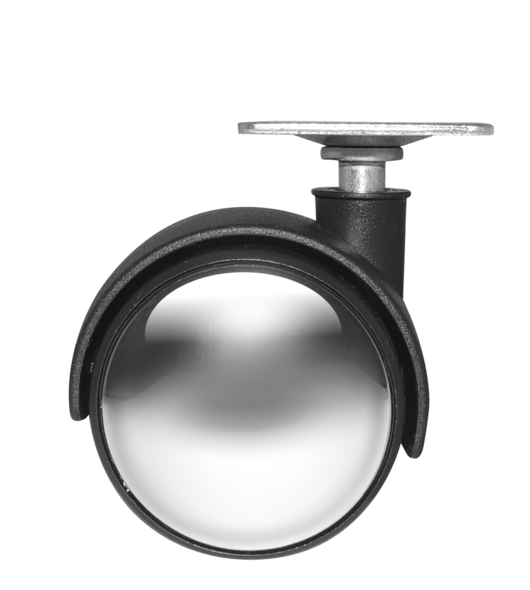 Rodízio plástico • Diâmetros: 60 mm • Disponível em 02 versões: com e sem freio • Acabamento: preto/cromado