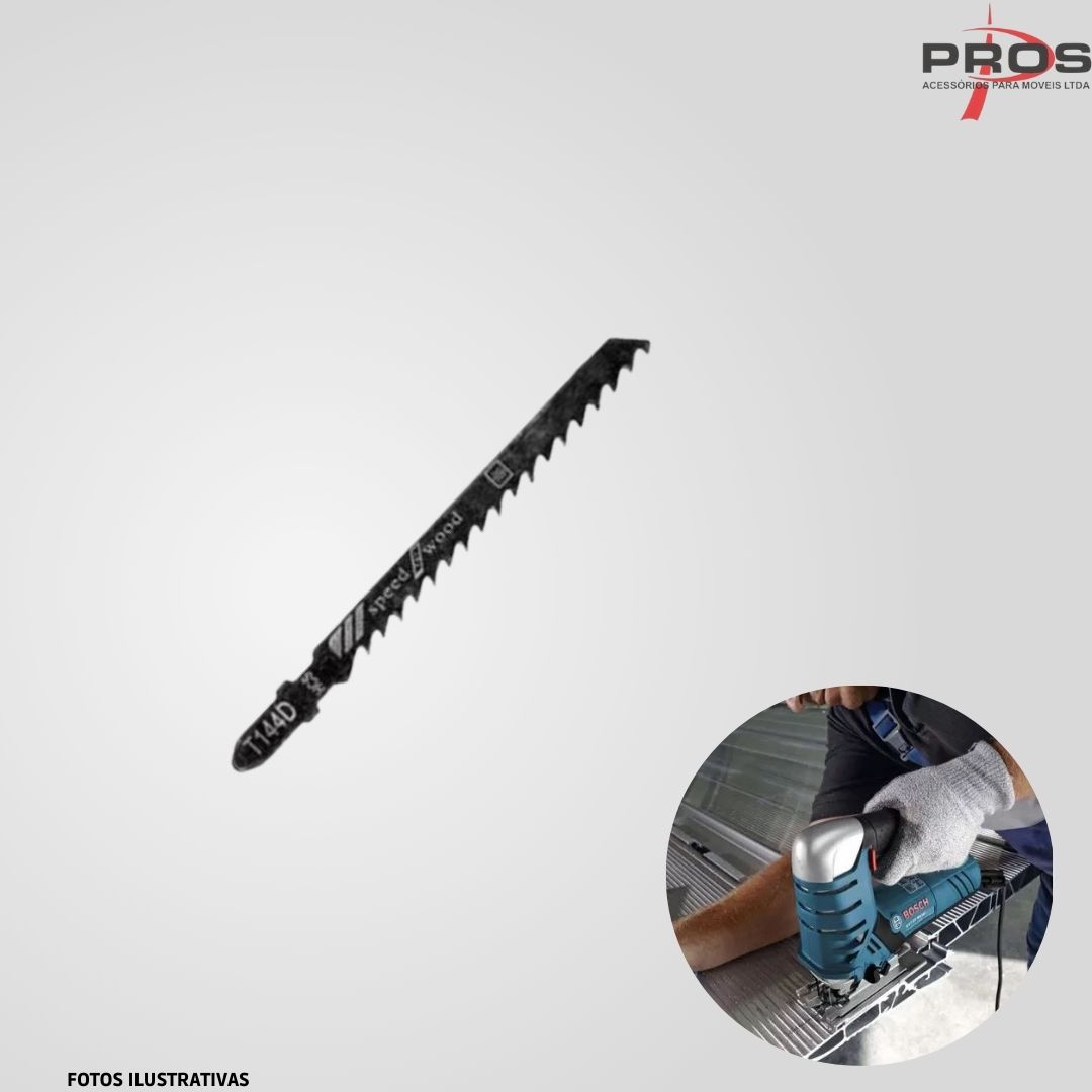 Lâminas de Serra Tico-Tico modelo T144D, em aço de alto teor de carbono (HCS), com encaixe tipo T, e comprimento de 100mm. Ideal para trabalhos em plásticos, madeiras e derivados, ferramenta indispensável em oficinas.