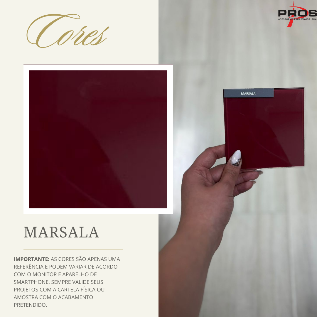 Portas e frentes produzidas com perfil de 20 mm de espessura. Vidro de 4 mm não temperado com película de proteção interna.